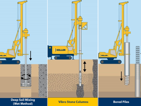 The design optimization resulted in varying depths of 800mm Ø stone column that were installed using the vibro replacement (VR) wet and dry processes for foundations that allowed settlements up to 25mm.